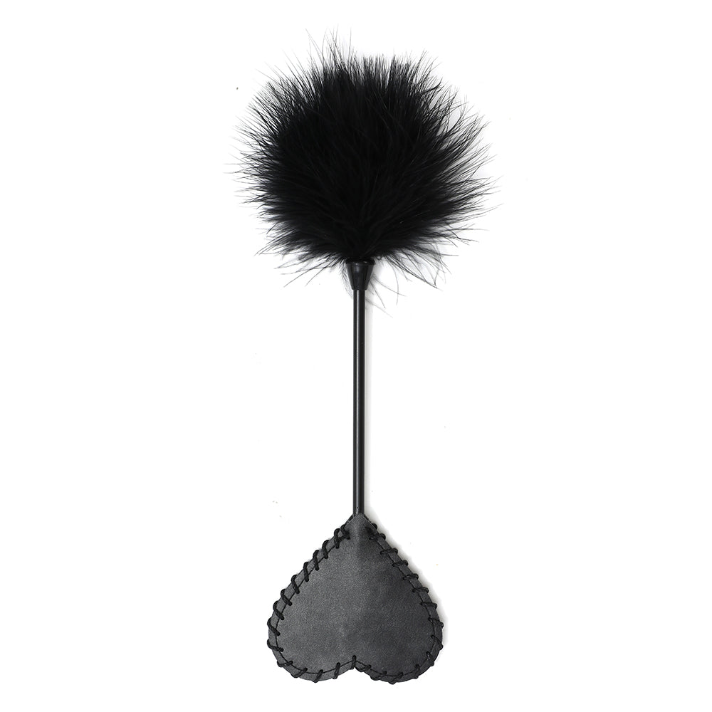Set Include: Blindfold, collar, handcuffs, ankle cuffs, feather crop, paddle