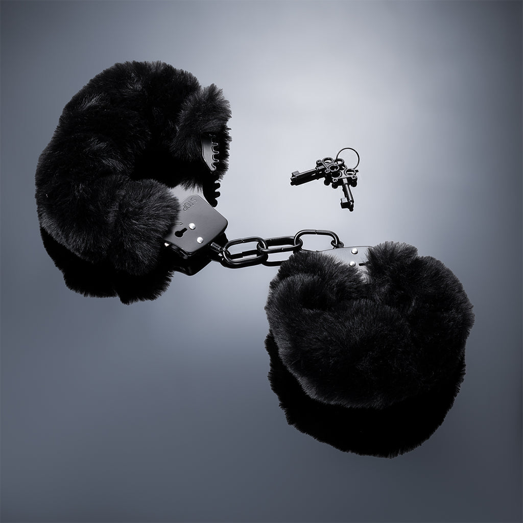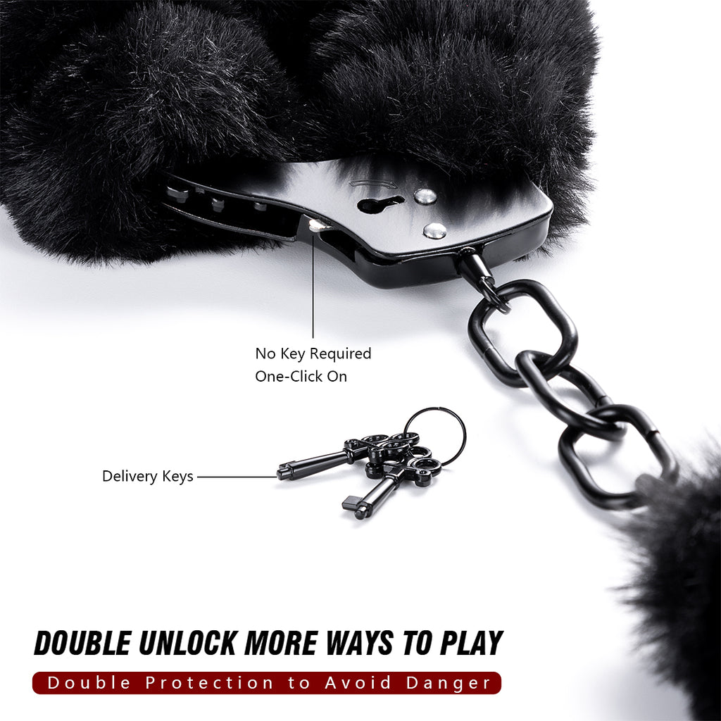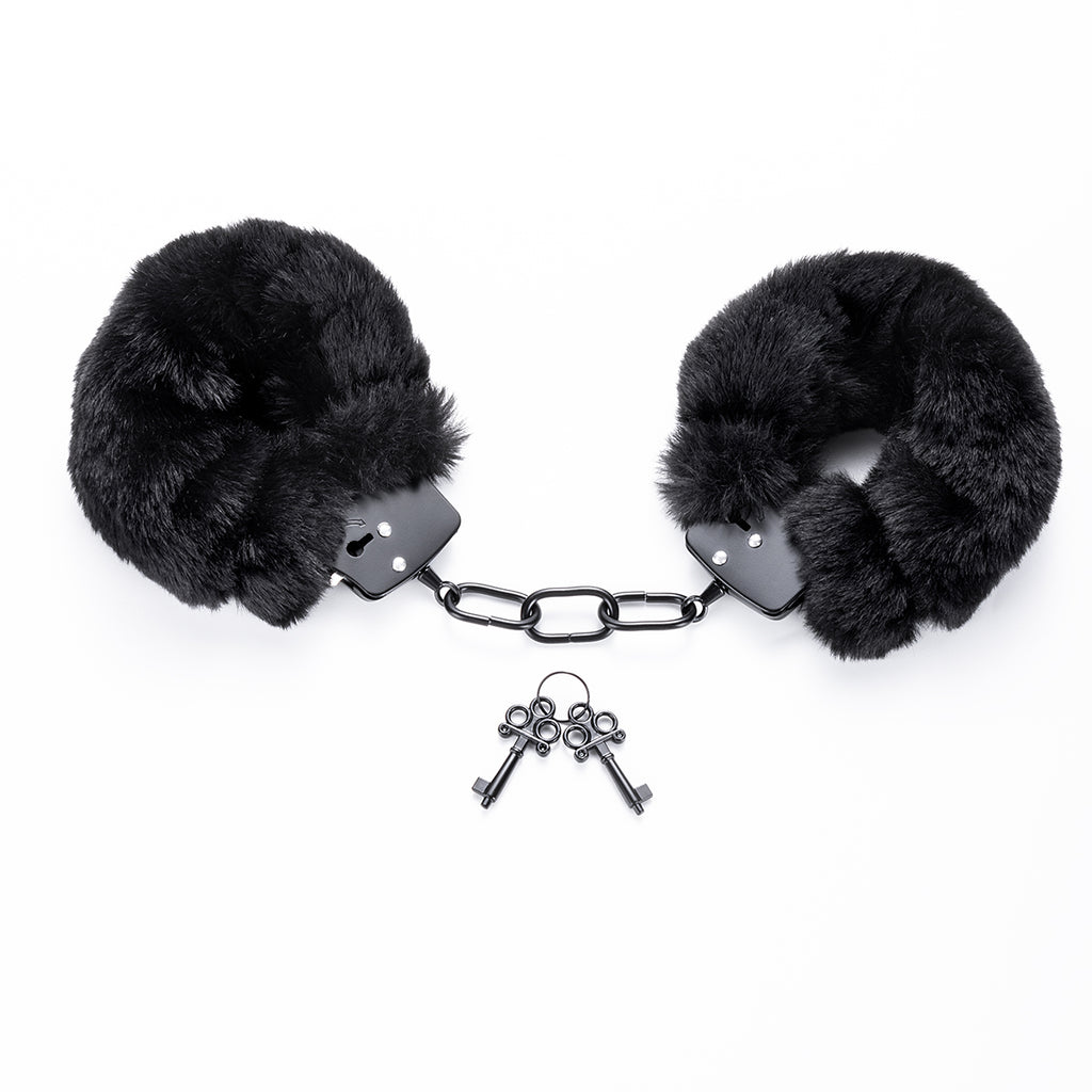 Black Furry Handcuffs with Keys