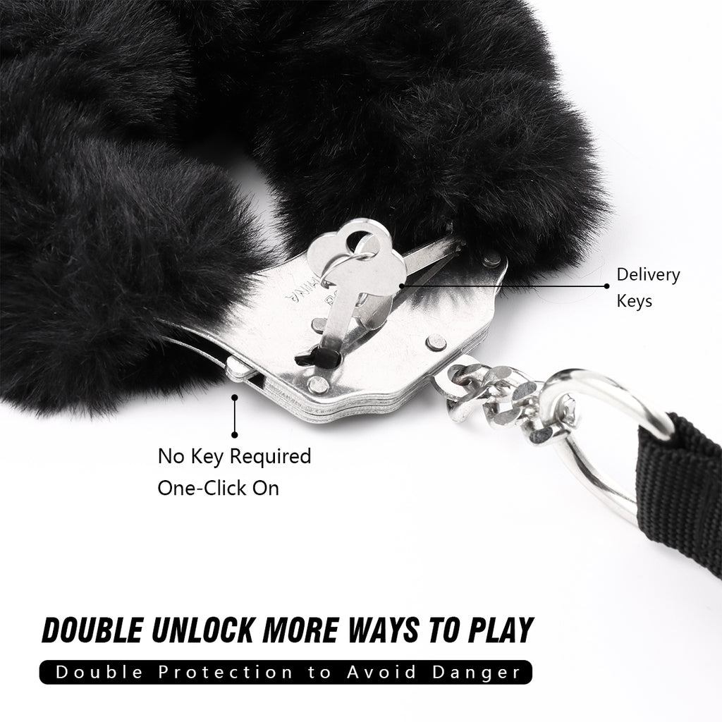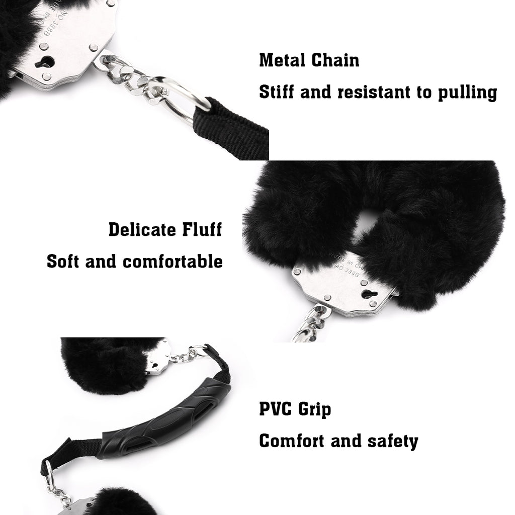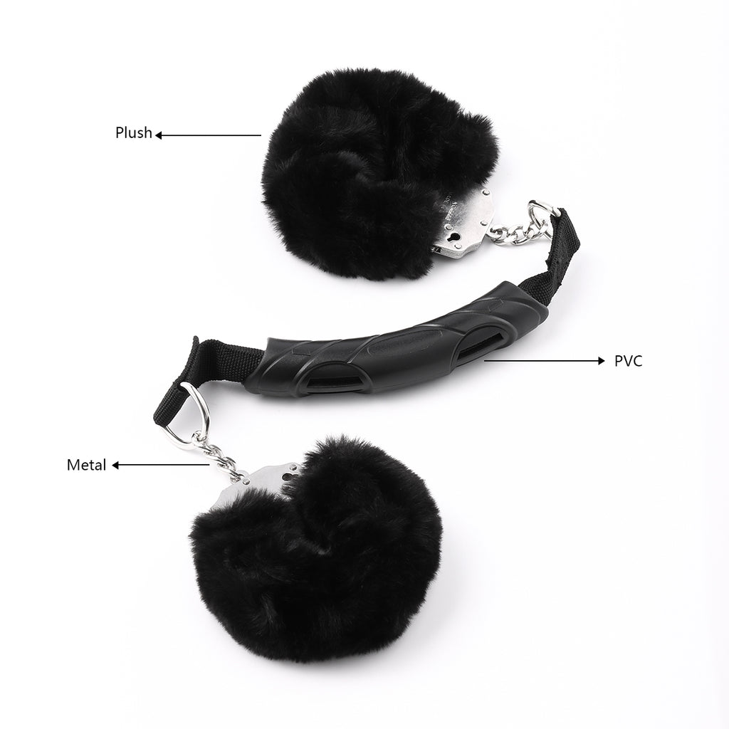 Furry Metal Handcuffs with Handle Plush Restraints for Sex