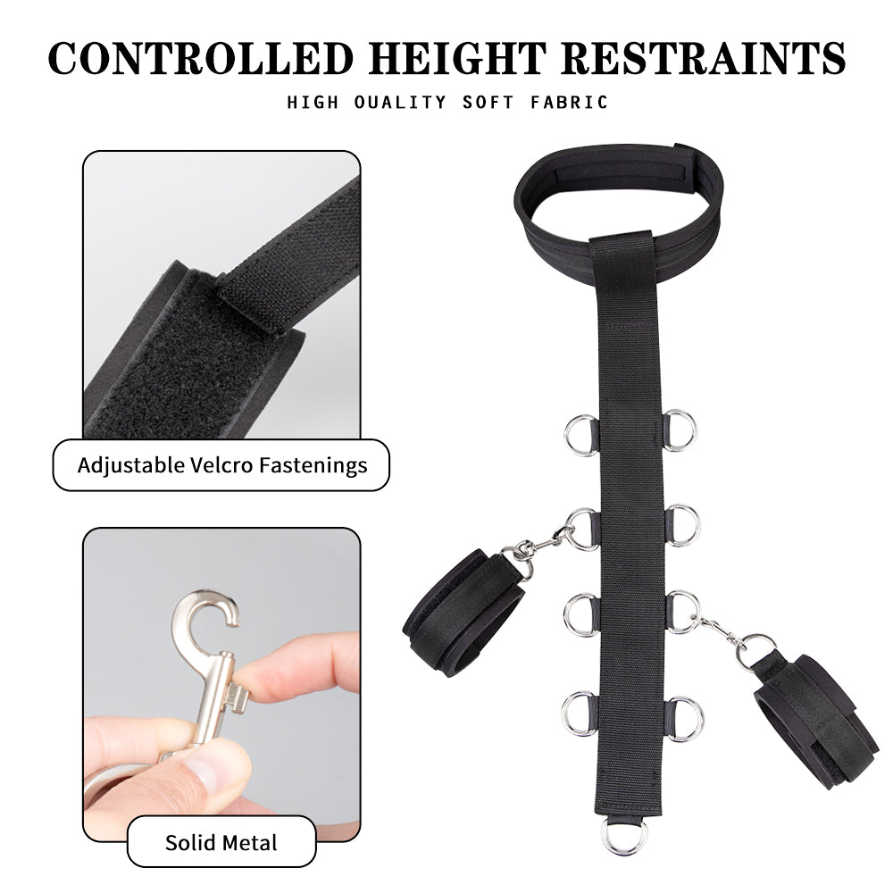 Sex Bondage Neck to Wrist Restraints Kit Black Behind Set