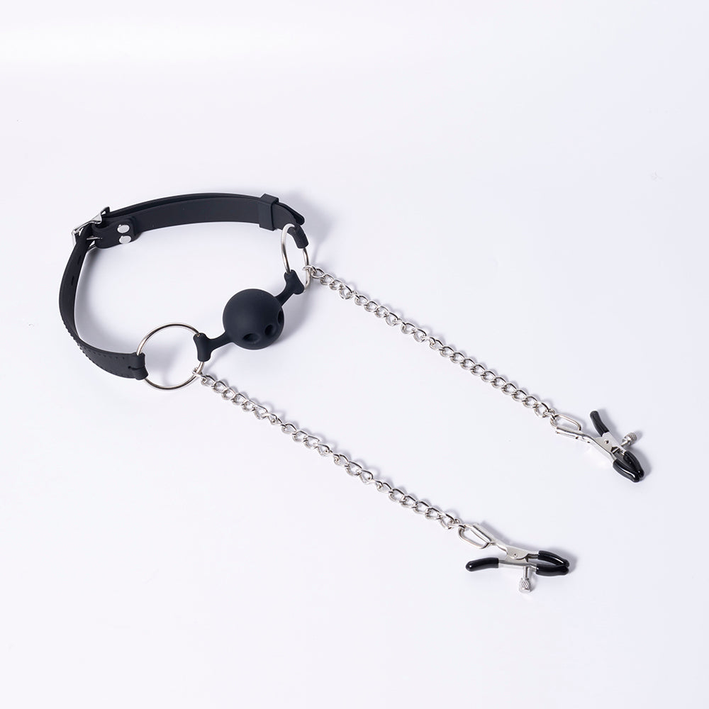 Silicone Ball Gag with Nipple Clamps Adjustable Nipple Clip Mouth Plug